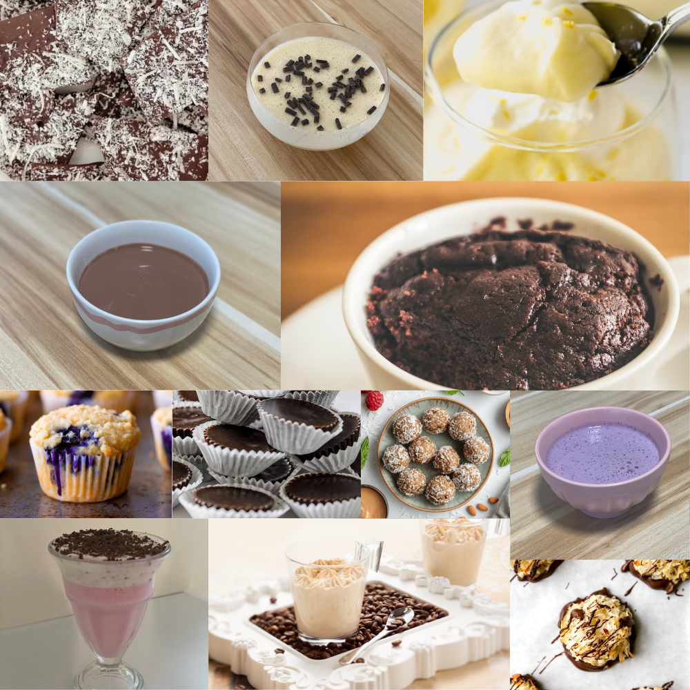 A mix of creamy, chocolatey and high-protein treats like: